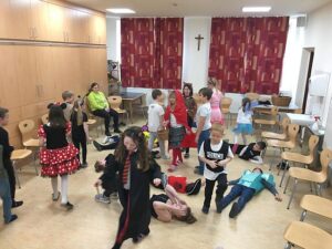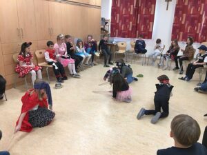 Am Faschingsdienstag feierten alle Hortkinder am Nachmittag ein fröhliches Fest mit tollen Kostümen. Nach Spiel und Spaß gab es zum Abschluss eine gemeinsame Jause. Alle freuten sich über den lustigen Nachmittag.