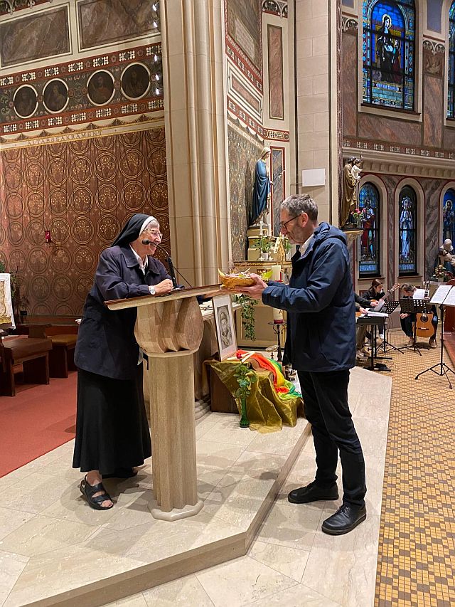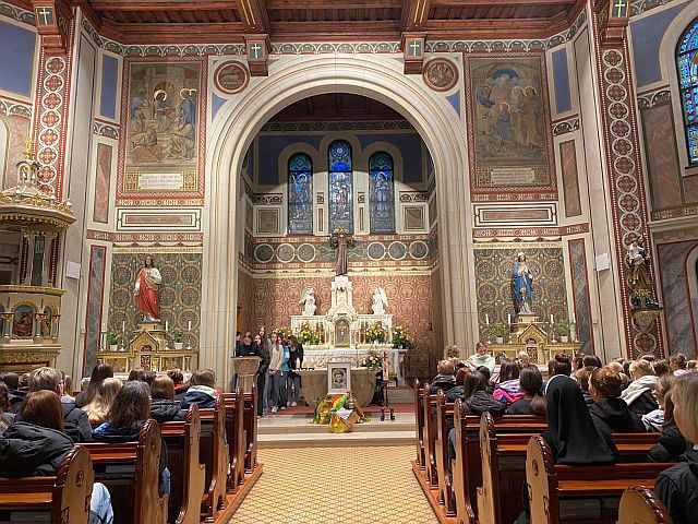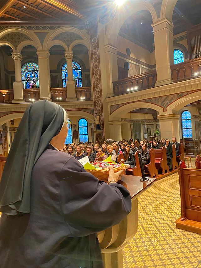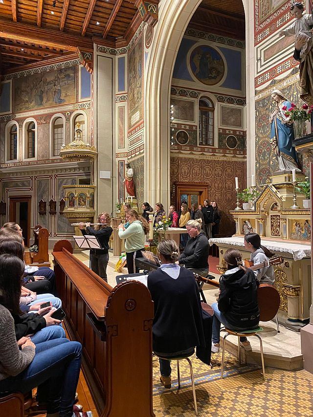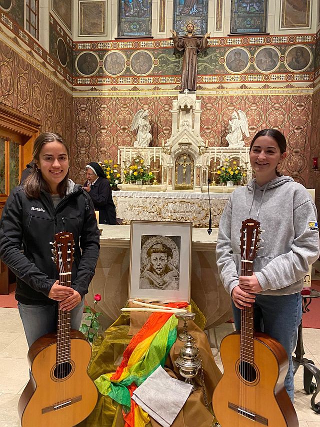 Die Schulgemeinschaft der BAfEP Amstetten feierte am 4. Oktober am Festtag des Hl. Franz von Assisi ein Morgenlob in der Klosterkirche. Gemeinsam mit Sr. Elvira wurde die Andacht von den beiden Religionslehrerinnen Michaela Lugmaier und Gabriele Pirringer vorbereitet sowie von den Schülerinnen der 4AB gestaltet. Musikalisch umrahmten das Morgenlob Nathalie und Sophie aus der 2A und Isabella und Magdalena aus der 4A unter der Leitung von Maria Rechberger und Sonja Filippits.