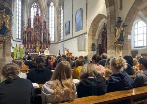 Am 5. Oktober 2021 feierte die Schulgemeinschaft der BAfEP gemeinsam mit Kaplan Franz Sieder einen Gottesdienst. Der Anlass war der Festtag des Heiligen Franz von Assisi am 4. Oktober. Unter der Leitung von Frau Prof. Sonja Schachenhofer gestaltete der Chor, bestehend aus Schülern und Schülerinnen der 2A und 2B die musikalische Umrahmung.