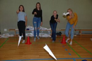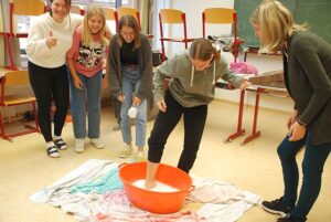 Da Corona ein Schulschlussfest im letzten Schuljahr nicht möglich machte, fand am Mittwoch, den 22. September 2021, an unserer Schule ein Gemeinschaftstag statt. Wir als Schülervertretung bereiteten mit den Klassensprecherinnen und Klassensprechern verschiedenste Stationen vor, die dazu beitrugen, die Gemeinschaft der jeweiligen Klassen zu stärken und miteinander Spaß zu haben. Insgesamt gab es 20 Stationen: Es mussten Musikstücke erraten oder Seifen gefischt werden, es wurde Activity gespielt, mit Lego um die Wette gebaut, ein blinder Parcours bestritten und vieles mehr. Jede Station wurde von zwei freiwilligen Helferinnen und Helfern aufgebaut und betreut. Auch die Professorinnen und Professoren unterstützten uns dabei tatkräftig.