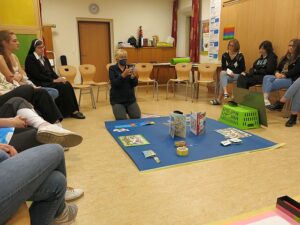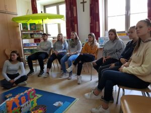Frau Karin Spieler gab grundlegende Informationen zu diesem Angebot, das in vielen Kindergärten speziell zur Förderung für Kinder angeboten wird. Sie berichtete von ihren Erfahrungen aus der Praxis und gab wertvolle Hinweise für die konkrete Umsetzung und stellte den Schülerinnen und Schülern Modelle aus ihrer langjährigen Kindergartenpraxis zur Verfügung.