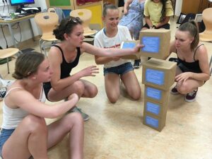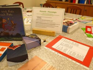17 Einheiten wurden an 4 Nachmittagen der letzten beiden Schulwochen zur Sprachförderung abgehalten. Trotz sengender Hitze waren die Teilnehmerinnen und Teilnehmer höchst motiviert. Es standen Inhalte der Didaktik, Praxis, Pädagogik, der inklusiven Pädagogik und aus Deutsch am Programm. Eine bunte Mischung aus Selbstreflexion der eigenen sprachlichen Entwicklung, informativen Blöcken zur alltagsintegrierten Sprachförderung, Videoanalysen, Freiarbeitsphasen mit praktischen Ideen, Gestaltung einer Zeitleiste zur Sprachentwicklung in Kombination mit Sprachentwicklungsstörungen und Grundlagenwissen zur Satz- und Wortgrammatik sorgte für engagierte Mitarbeit aller Beteiligten.