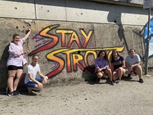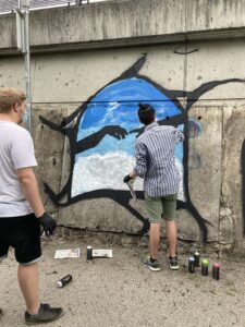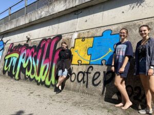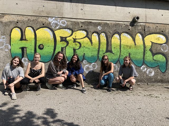 Auf Einladung der KIAM (Kunstinitiative Amstetten) zum Mostviertelfestival im Juli 2021 machten die SchülerInnen der 3A Graffitientwürfe zum Thema „Hoffnung in Zeiten von Corona“. Positive Worte sollten den SpaziergängerInnen in Amstetten Zuversicht vermitteln. Die Stadtverwaltung genehmigte uns und der HLW Amstetten am schwarzen Weg an der ÖBB Wand zu sprayen. Wir setzten unsere Ideen in der letzten Schulwoche in die Tat um.
